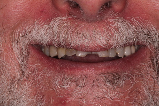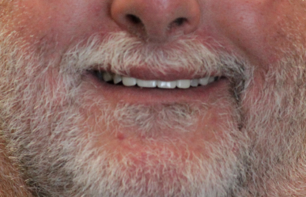 Treatment consisted of restoring worn front teeth using eight crowns.