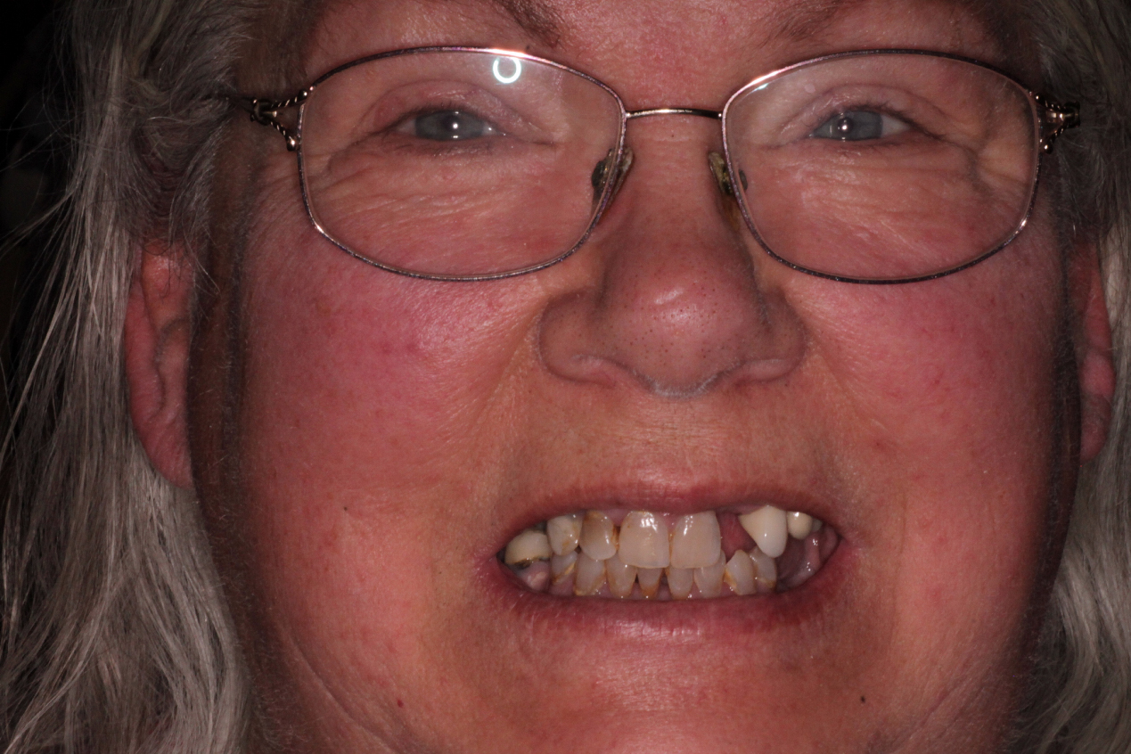 Treatment consisted of extracting remaining teeth and placing implants the same day, followed by temporary teeth.